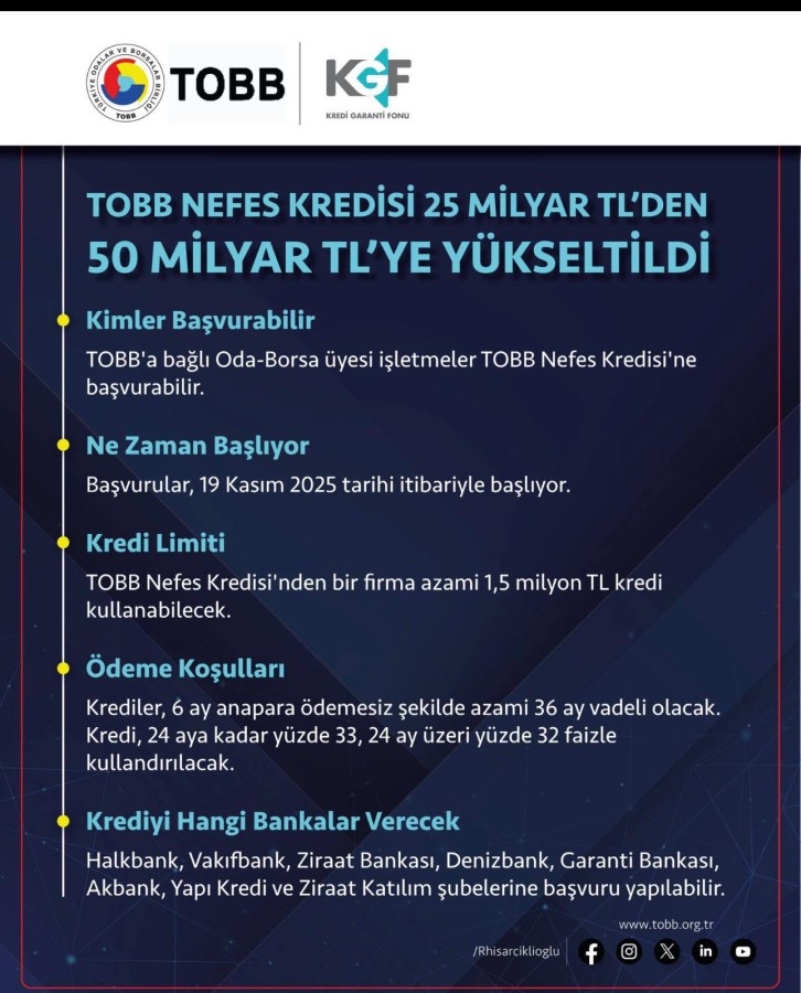 TOBB NEFES KREDİSİ YENİDEN BAŞLIYOR