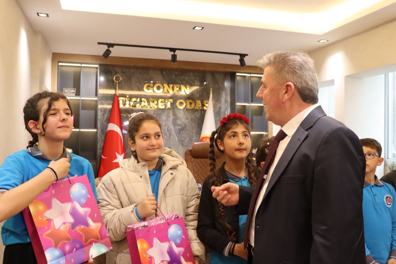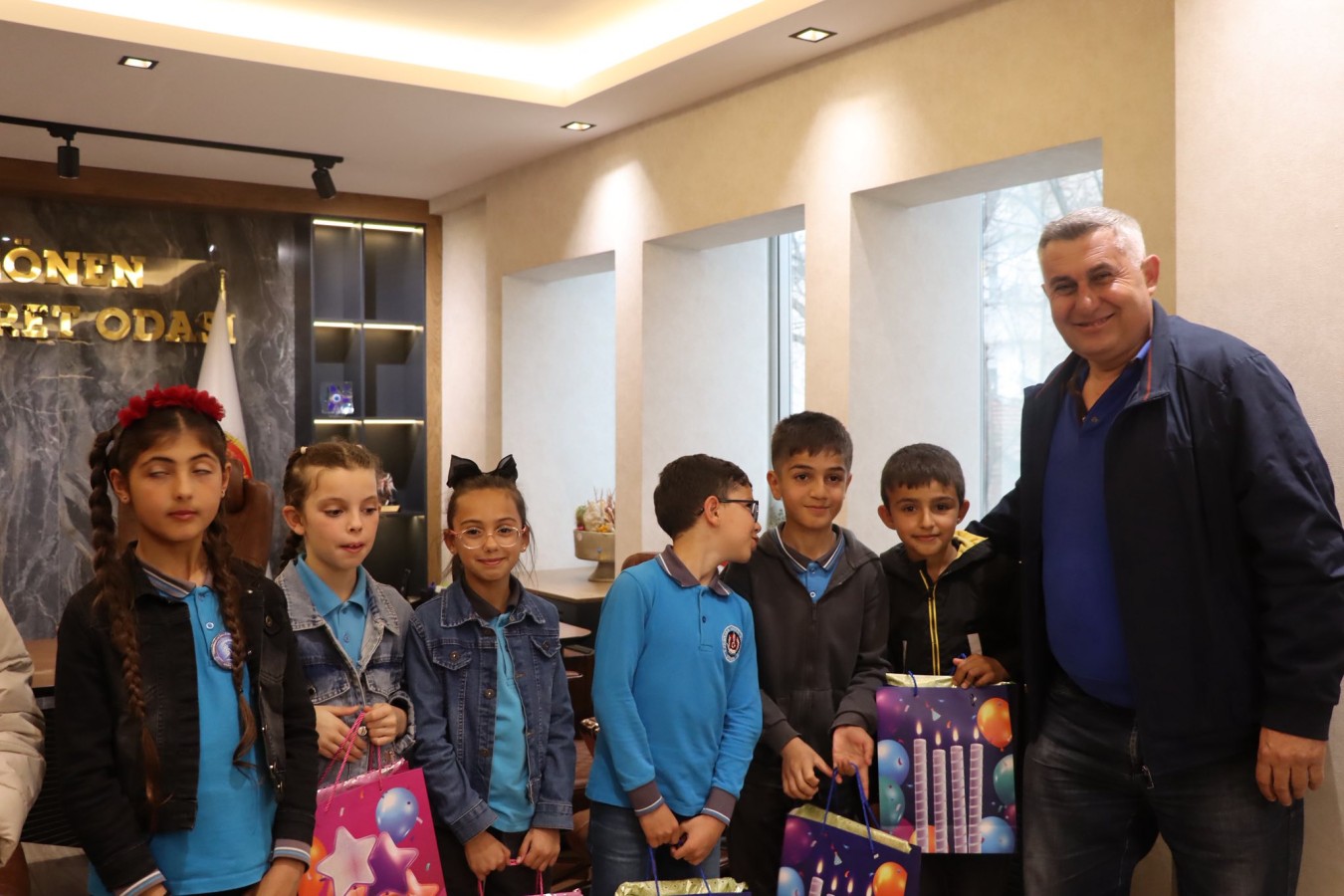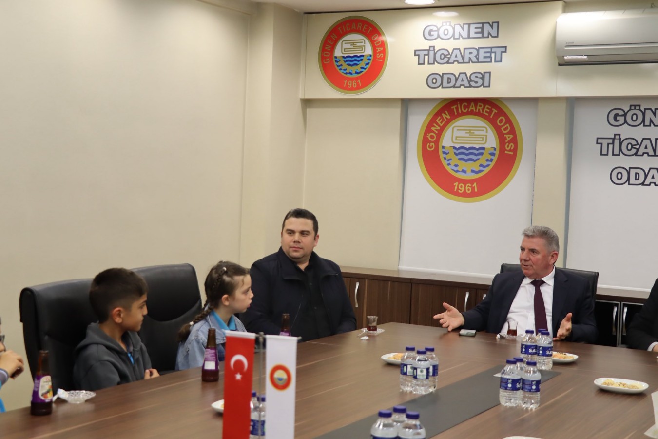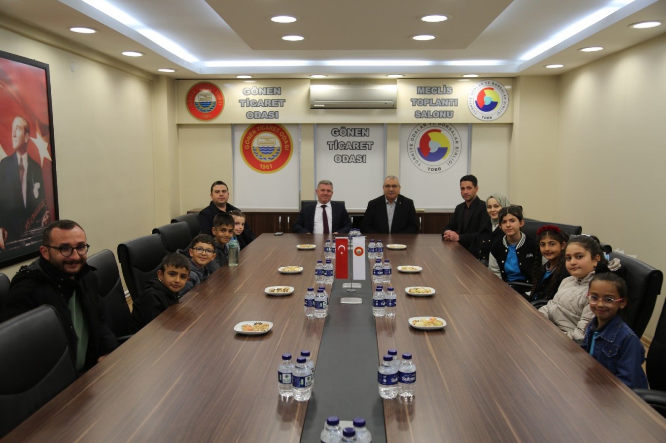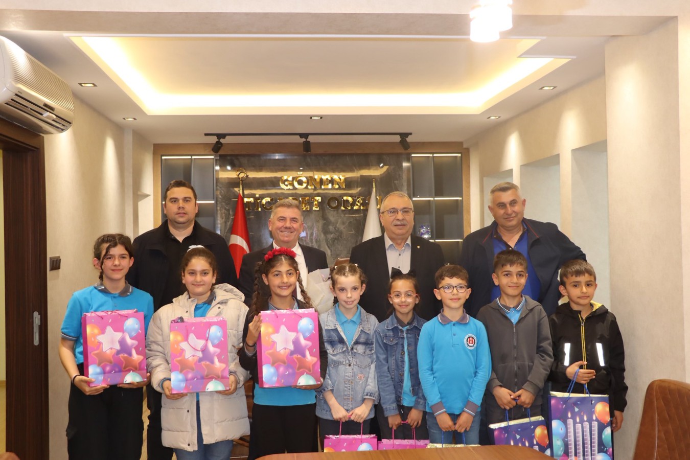 23 Nisan Ulusal Egemenlik ve Çocuk Bayramı etkinlikleri kapsamında, Gönen Karşıyaka 100. Yıl İlkokulu 4. sınıf öğrencileri ve öğretmenleri; Yönetim Kurulu Başkanımız İsmail MUTLU, Meclis Başkanımız Yusuf ÇETİNKAYA ile Yönetim Kurulu Üyelerimiz İsmail Serkan TARKAN ve Özcan ÇALIK ile bir araya geldiler.