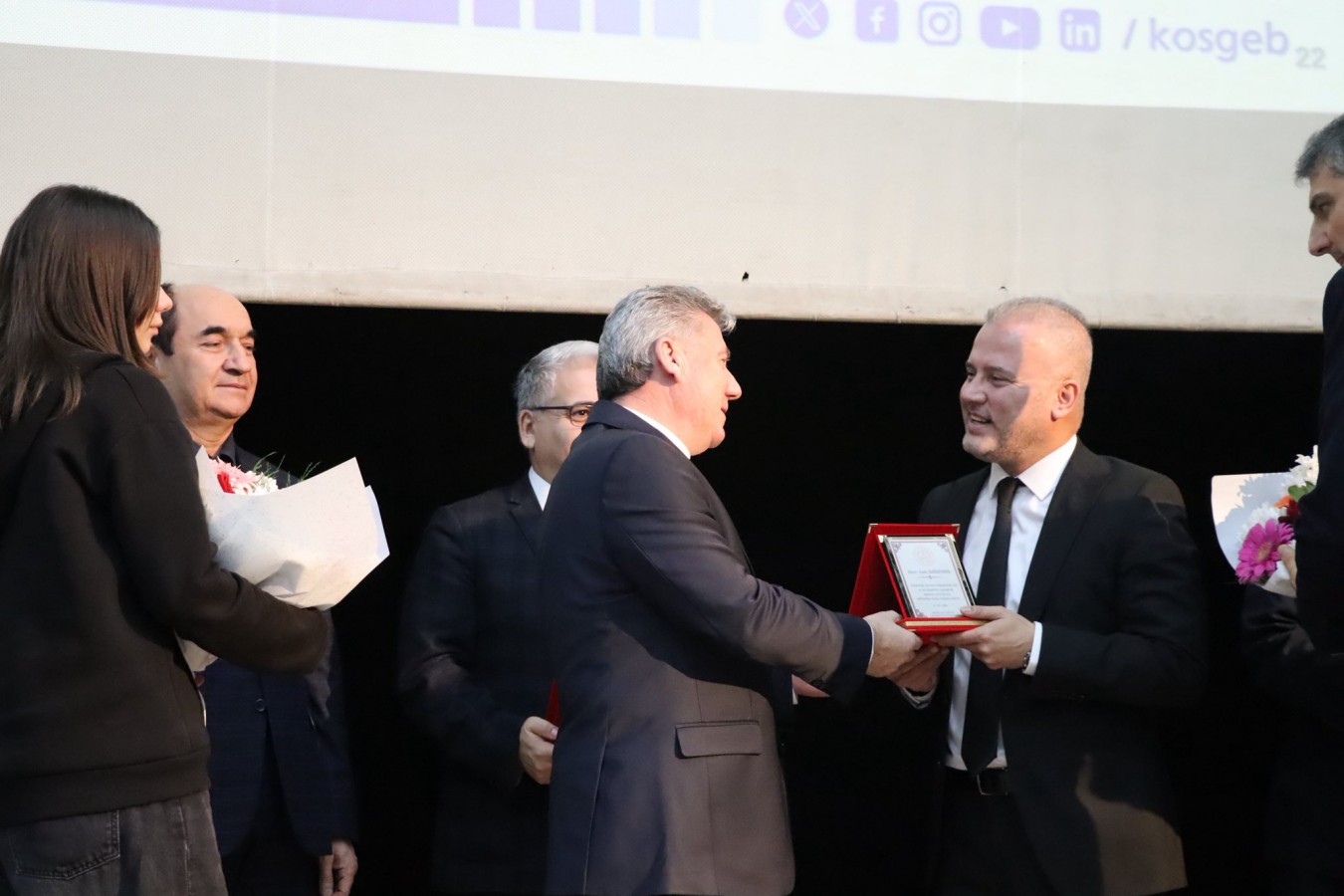 Bilgilendirme toplantısı sonrasında İlçe Kaymakamı Ahmet ALTINTAŞ, Odamız Yönetim Kurulu Başkanı İsmail MUTLU ve İlçe Milli Eğitim Müdürü Sezai TURNA tarafından Dr. Deniz TİMURÇİN ve KOBİ Uzmanı Kadir DAĞDEVİREN'e plaket takdim edildi.