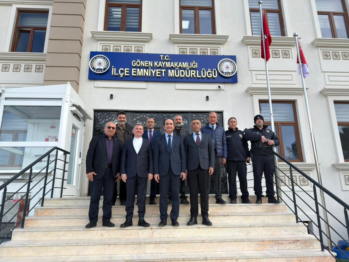 Yönetim Kurulu Başkanımız İsmail MUTLU, Meclis Başkanımız Yusuf ÇETİNKAYA, geçmiş dönem başkanlarımızdan Hasan ÖZÇAĞLAYAN, Yönetim Kurulu Başkan Yardımcımız Mustafa TÜMEN, Yönetim Kurulu Üyemiz Erol ÖZÇEŞMECİ, Meslek Komite Üyemiz Eren Can TAYFUR ve Genel Sekreterimiz Selim ÇİLTEPE , 4 Şubat 2026 Çarşamba günü Gönen Kaymakamı Ahmet ALTINTAŞ ve İlçe Emniyet Müdürü Aydın ZEYBEK’i yeni hizmet binasındaki makamlarında hayırlı olsun ziyaretinde bulundular. Yeni hizmet binasının ilçemiz için hayırlara vesile olmasını dileriz. Misafirperverliklerinden dolayı kendilerine teşekkür ederiz.