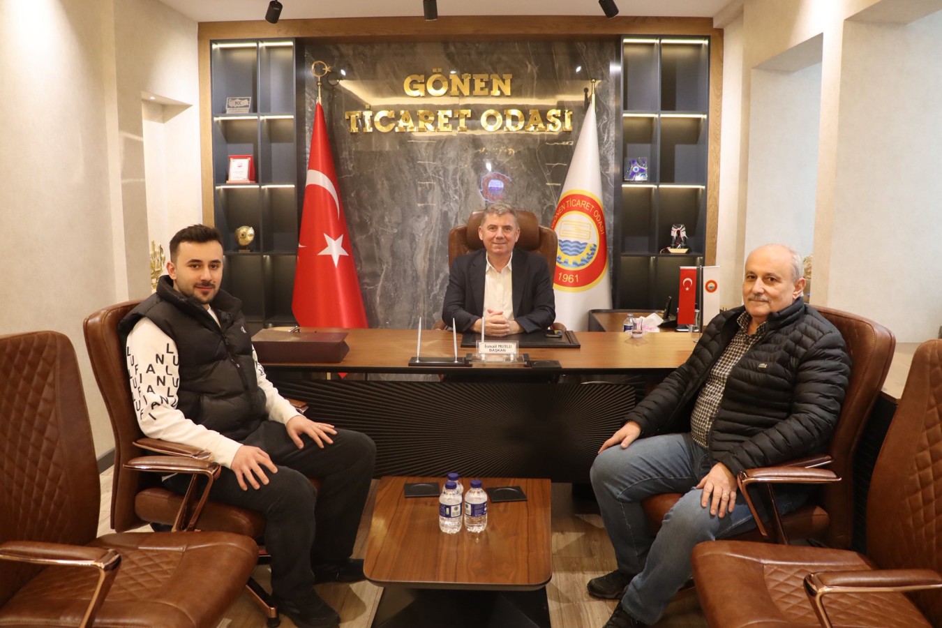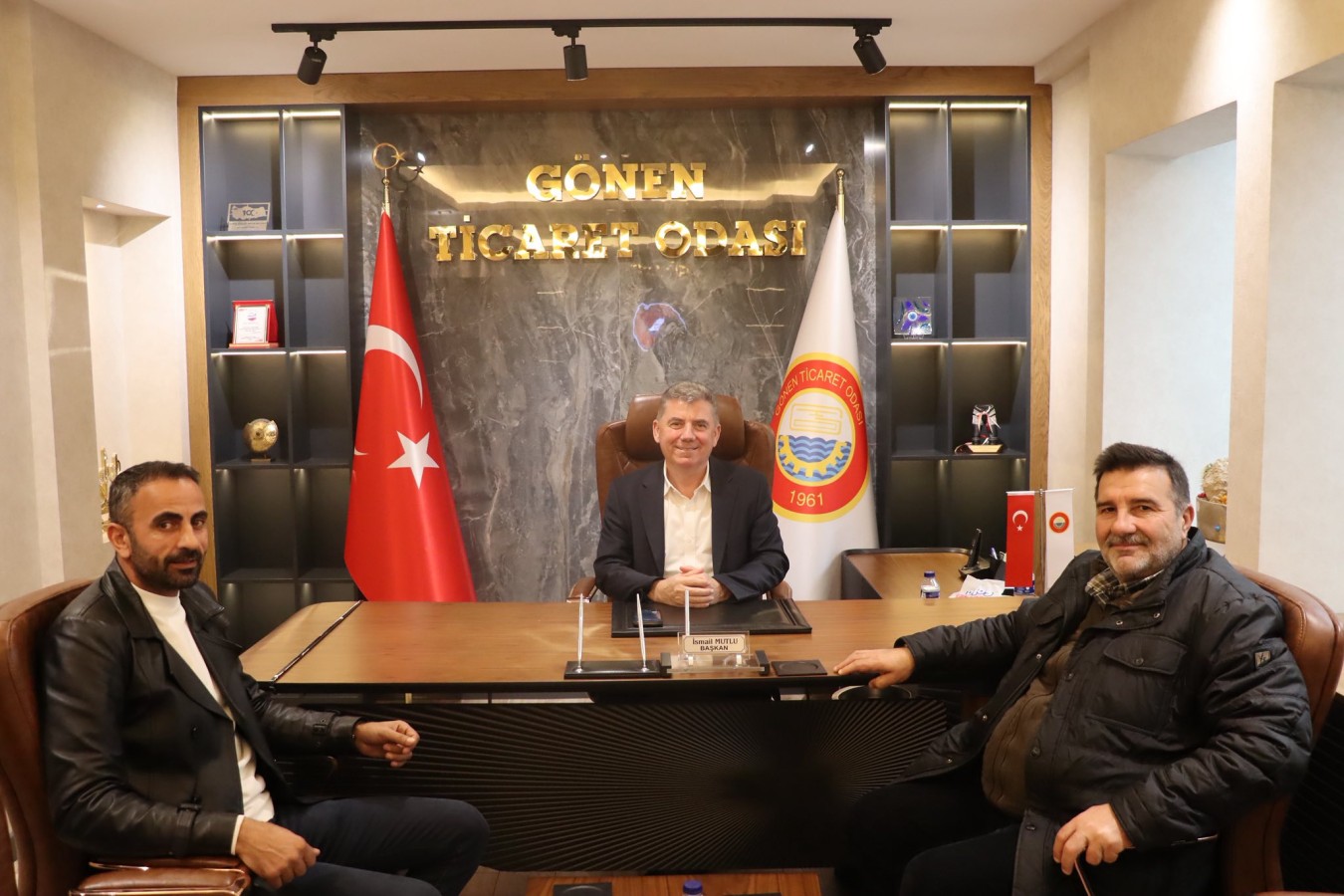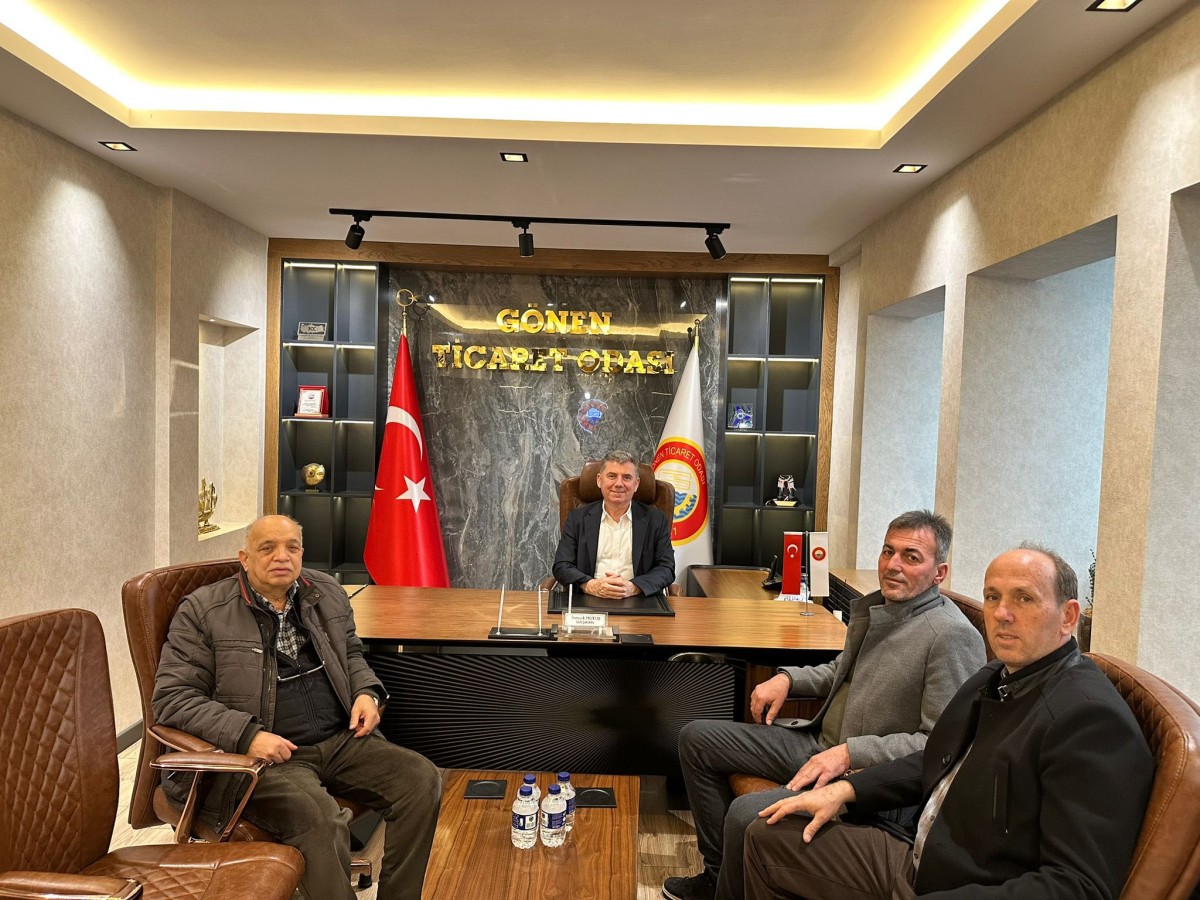 Gönen Ticaret Borsası Başkanı İbrahim MUTLU, Yönetim Kurulu Başkan Yardımcımız Mustafa TÜMEN, Odamız İnşaat Meslek Komitesi Başkanı Mehmet ETİK, Küçükakça Gıda Tarım işletme sahibi Mehmet KÜÇÜKAKÇA, Aşutlar işletme sahipleri Hüseyin AŞUT ve Sadi Kutay AŞUT, Korkmaz İnşaat işletme sahipleri Korkmaz TAYFUR ve Eren Can TAYFUR, Dağcı Deri işletme sahibi Ümit DAĞCI, Muhtarlar Derneği Başkanı Taner IŞIK ile Muhtarlar Derneği Yönetim Kurulu Üyeleri Ahmet GÖNENÇ ve Halit YILMAZ, 30 Ocak 2026 Cuma günü Yönetim Kurulu Başkanımız İsmail MUTLU’ya geçirdiği operasyonun ardından geçmiş olsun ziyaretinde bulundular.Ziyaretlerinden dolayı kendilerine teşekkür ederiz