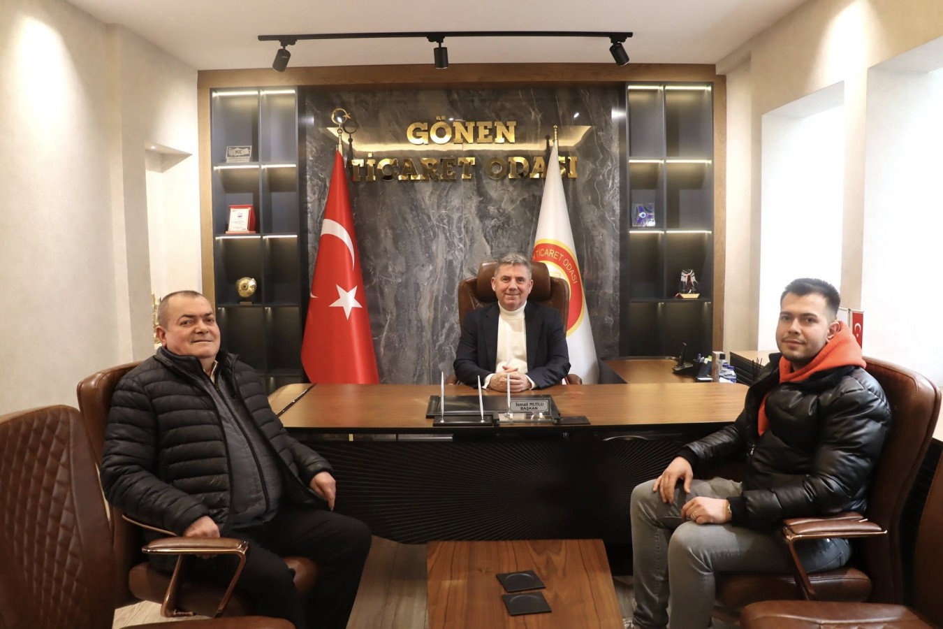 Devlet Su İşleri Gönen Şube Müdürü Orhan TÜRKOĞLU ve Merkez Izgara Salonu İşletme sahipleri Tahsin KARABACAK ile Murat KARABACAK, 26 Şubat 2026 Perşembe günü Yönetim Kurulu Başkanımız İsmail MUTLU’yu ziyaret ettiler.