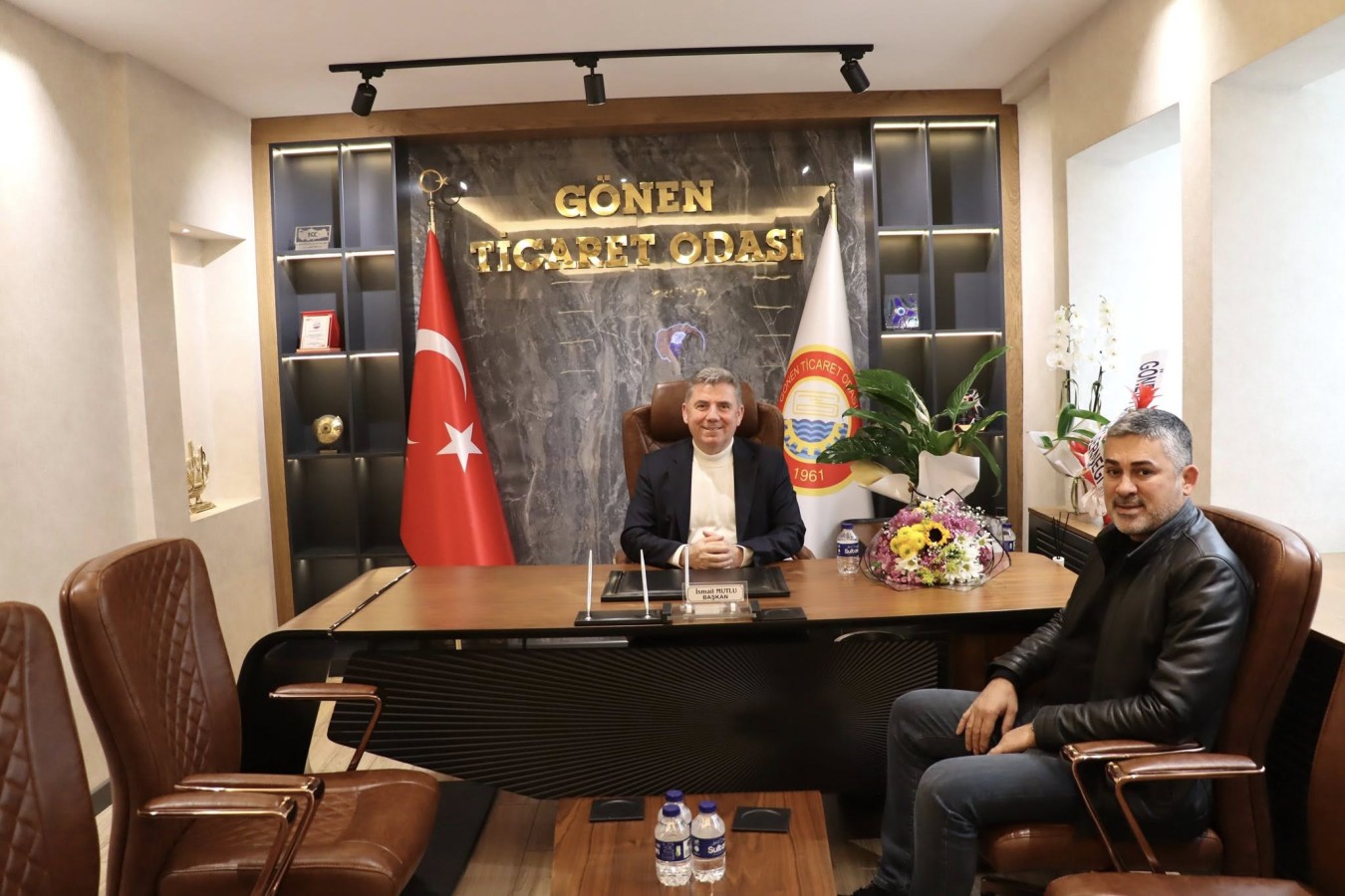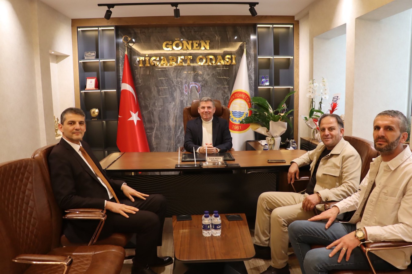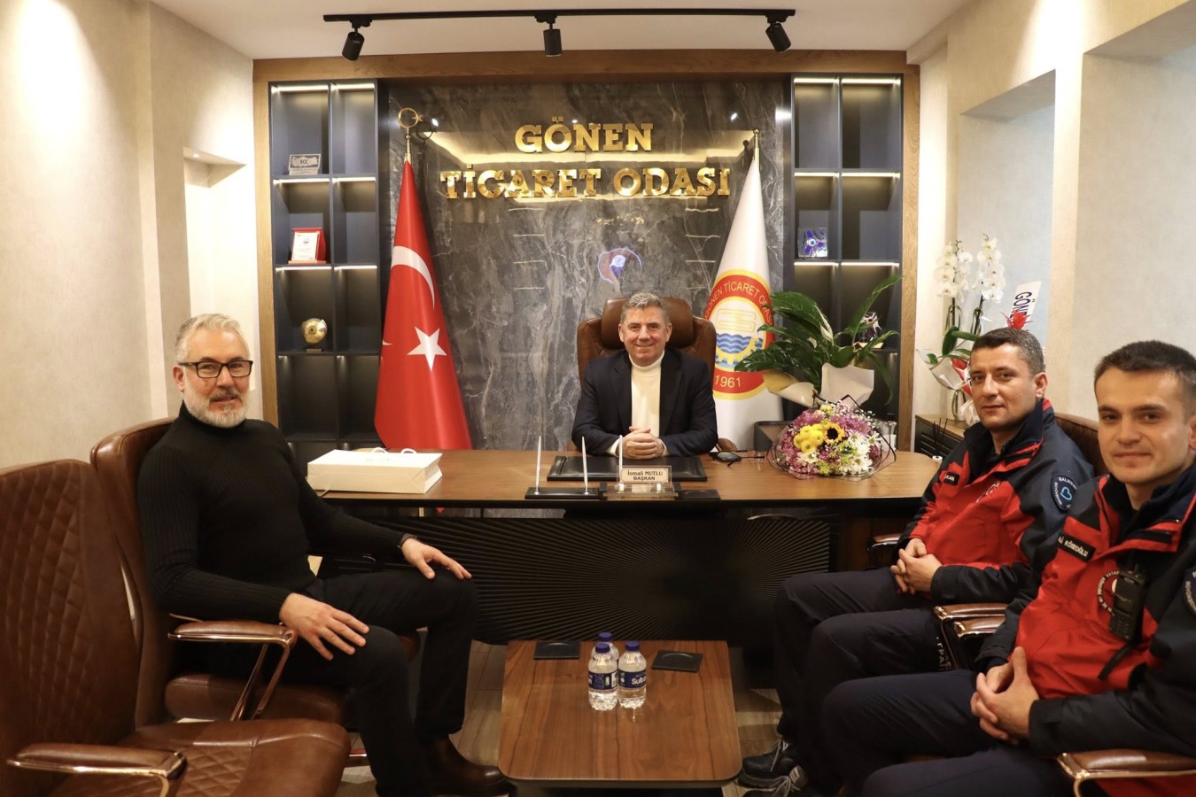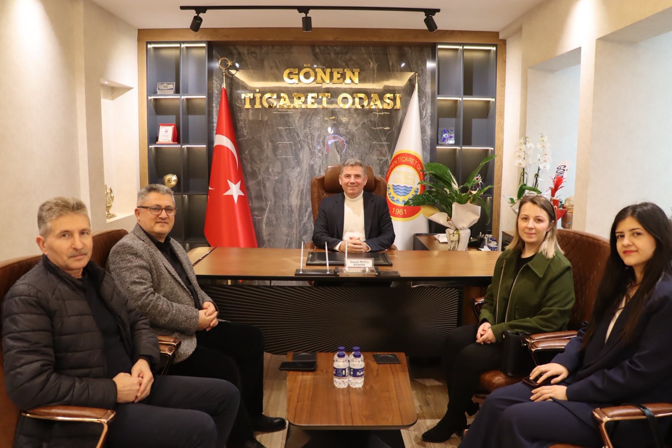 Tüm Emlak Danışmanlığı Birliği (TEDB) Gönen Manyas İlçe Temsilcisi Erol BOZDAĞ, Gönen İstanbul Pazarı işletme sahibi Mustafa GÜRCANLAR, iş insanı Aybars ŞENKUL, Gönen Özel Kariyer işletme sahibi Yaşar KOYUNCU, Eğitim Koordinatörü İrfan YAZAN, Müdürleri Seray DAĞLI ve Gülşah GÜRE, Gönen Ticaret Odası Mesleki ve Teknik Anadolu Lisesi Müdürü Zülfikar TAN, Odamız Meslek Komitesi Üyesi ve Kervan Nakliyat işletme sahibi Süleyman ZENGİN ile Samet KARŞU, TOBB Odalar ve Borsalar Birliği Müdürü Bircan BEKAR, Müdür Yardımcısı Seçil AŞMET, Okul Aile Birliği Başkanı Sevde ÇAKIR, Başkan Yardımcısı Gizem KARABULUT, TNC Elektrik işletme sahibi Levent KARADUMAN, Meclis Başkan Yardımcımız Erkan SARI, Balıkesir Büyükşehir Belediyesi İtfaiye Amirleri Sinan KARA ve Ali KÖSEOĞLU 5 Şubat 2026 Perşembe günü, Yönetim Kurulu Başkanımız İsmail MUTLU’ya ziyarette bulundular. Ziyaretlerinden dolayı kendilerine teşekkür ederiz.