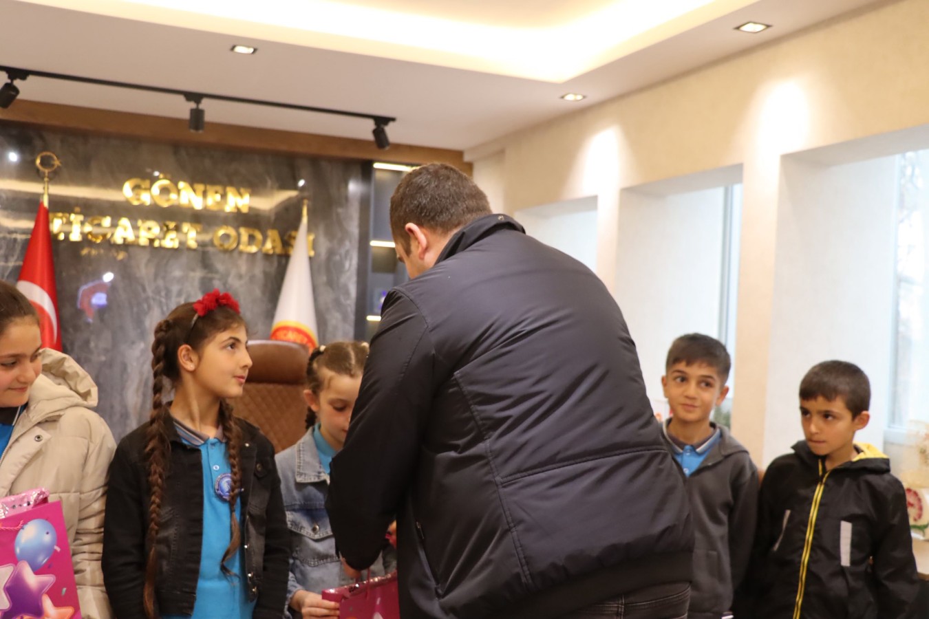 23 Nisan Ulusal Egemenlik ve Çocuk Bayramı etkinlikleri kapsamında, Gönen Karşıyaka 100. Yıl İlkokulu 4. sınıf öğrencileri ve öğretmenleri; Yönetim Kurulu Başkanımız İsmail MUTLU, Meclis Başkanımız Yusuf ÇETİNKAYA ile Yönetim Kurulu Üyelerimiz İsmail Serkan TARKAN ve Özcan ÇALIK ile bir araya geldiler.