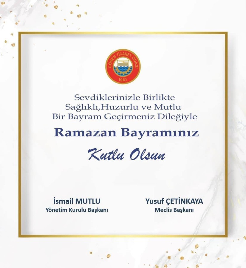 Birlik, dayanışma ve paylaşmanın en güzel örneklerini yaşadığımız mübarek bayramın; iş dünyamıza, üyelerimize ve tüm toplumumuza sağlık, huzur ve bereket getirmesini diliyoruz.Odamızda, birlikte üretmeye ve büyümeye devam edeceğimiz nice bayramlar.Ramazan Bayramınız kutlu olsun.