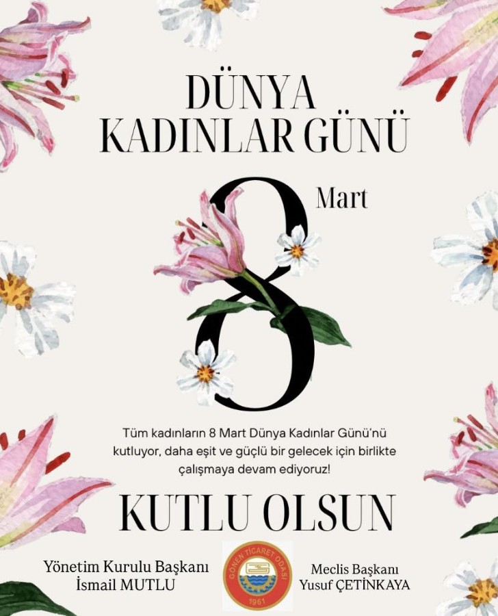 Dünyayı güzelleştiren, toplumu ayakta tutan iş dünyasına değer katan ve girişimci ruhuyla geleceği inşa eden tüm kadınlarımızın 8 Mart Dünya Kadınlar Günü kutlu olsun.