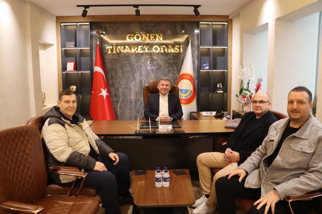 Tüm Emlak Danışmanlığı Birliği (TEDB) Gönen Manyas İlçe Temsilcisi Erol BOZDAĞ, Gönen İstanbul Pazarı işletme sahibi Mustafa GÜRCANLAR, iş insanı Aybars ŞENKUL, Gönen Özel Kariyer işletme sahibi Yaşar KOYUNCU, Eğitim Koordinatörü İrfan YAZAN, Müdürleri Seray DAĞLI ve Gülşah GÜRE, Gönen Ticaret Odası Mesleki ve Teknik Anadolu Lisesi Müdürü Zülfikar TAN, Odamız Meslek Komitesi Üyesi ve Kervan Nakliyat işletme sahibi Süleyman ZENGİN ile Samet KARŞU, TOBB Odalar ve Borsalar Birliği Müdürü Bircan BEKAR, Müdür Yardımcısı Seçil AŞMET, Okul Aile Birliği Başkanı Sevde ÇAKIR, Başkan Yardımcısı Gizem KARABULUT, TNC Elektrik işletme sahibi Levent KARADUMAN, Meclis Başkan Yardımcımız Erkan SARI, Balıkesir Büyükşehir Belediyesi İtfaiye Amirleri Sinan KARA ve Ali KÖSEOĞLU 5 Şubat 2026 Perşembe günü, Yönetim Kurulu Başkanımız İsmail MUTLU’ya ziyarette bulundular. Ziyaretlerinden dolayı kendilerine teşekkür ederiz.